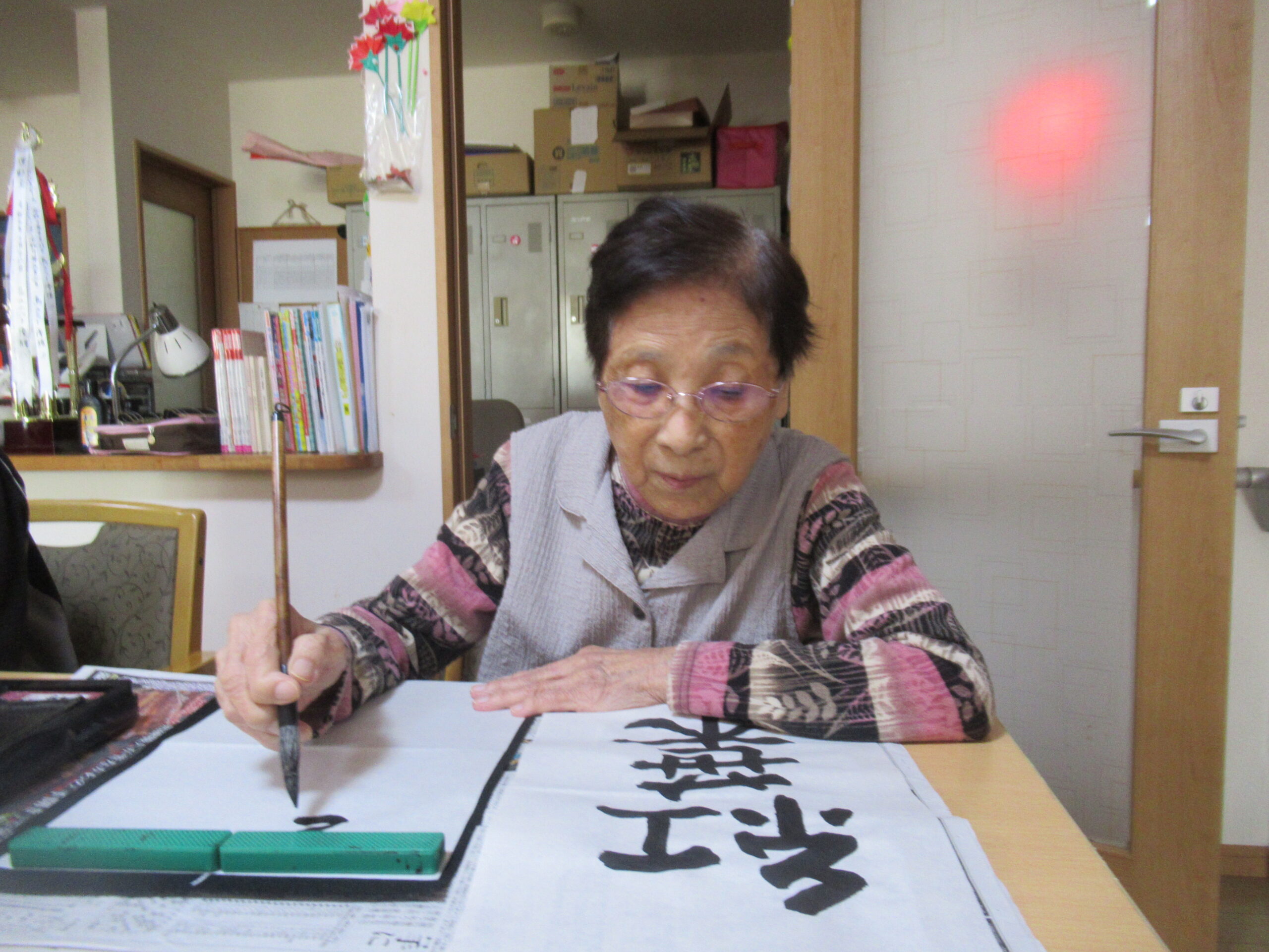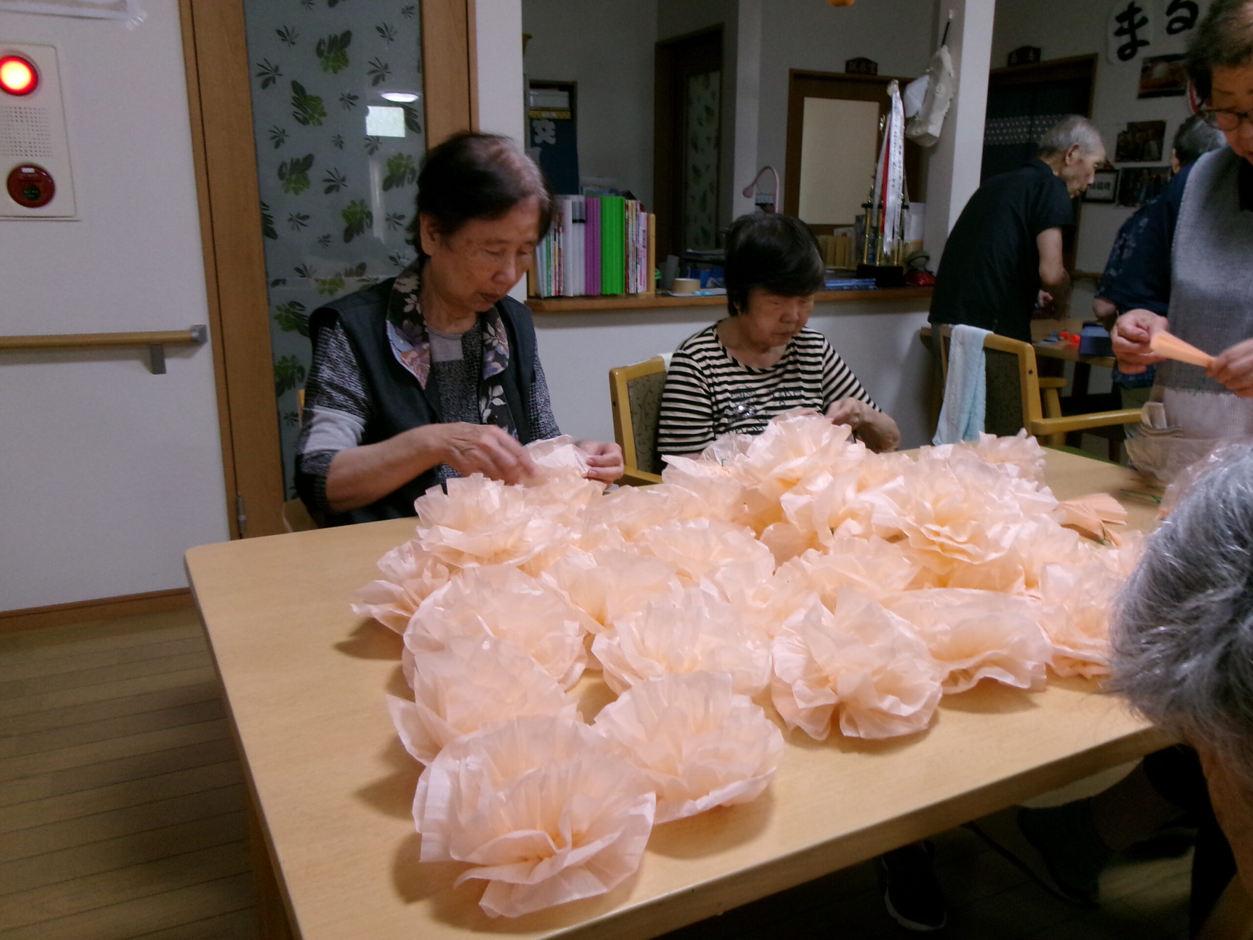 言葉遊びや書道、カラオケなど様々なレクリエーションで楽しみます